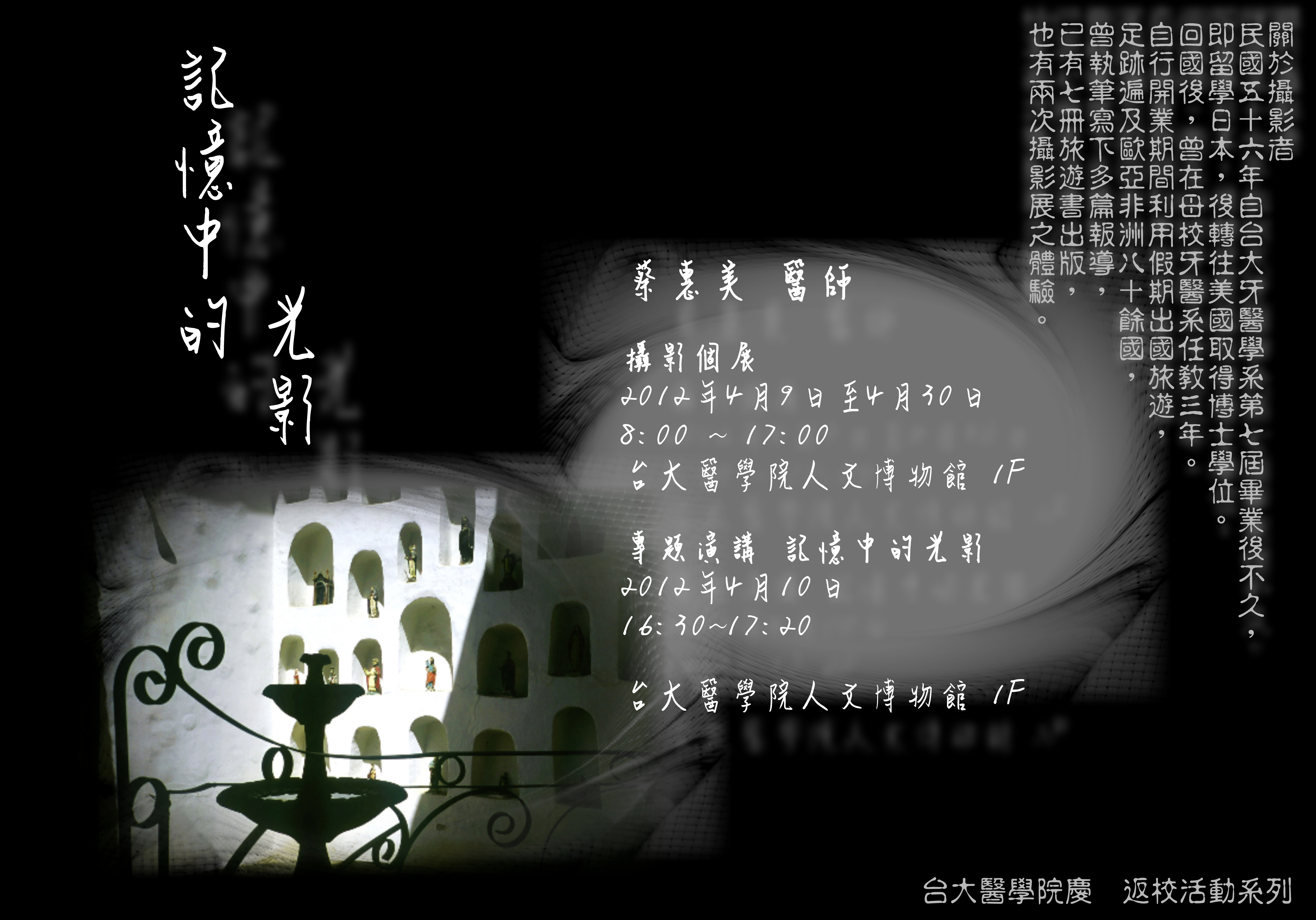 16:30~17:20 專題演講 – 記憶中光影 --- 蔡惠美醫師