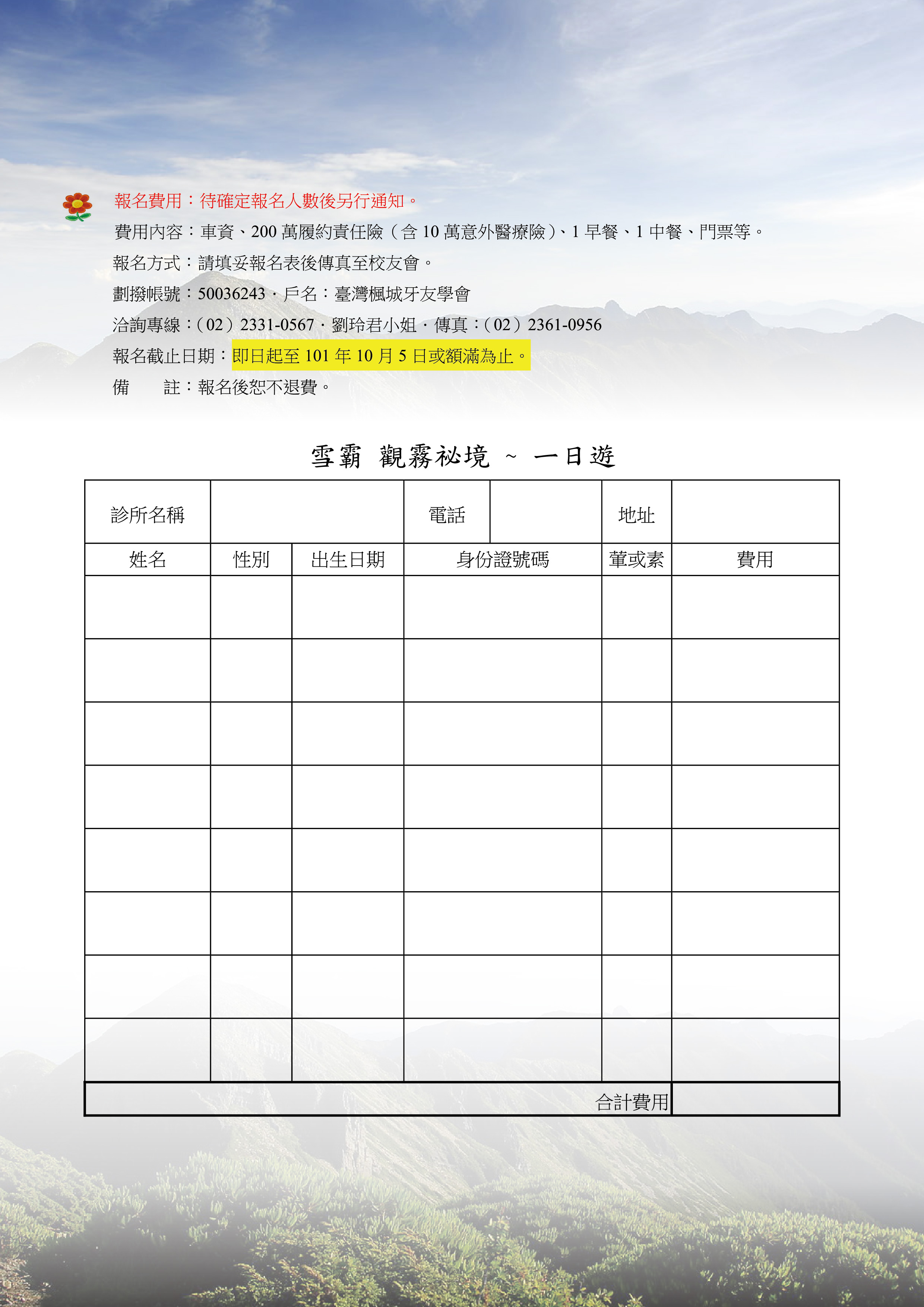101秋季旅遊 - 觀霧秘境 雪霸一日遊