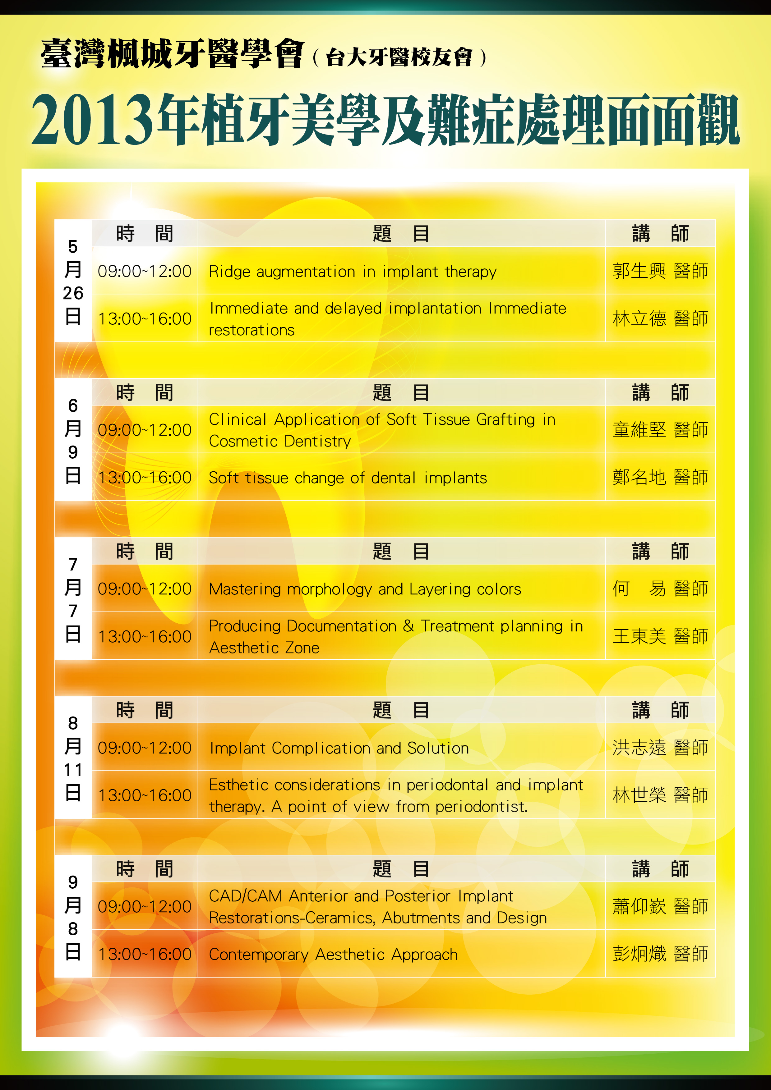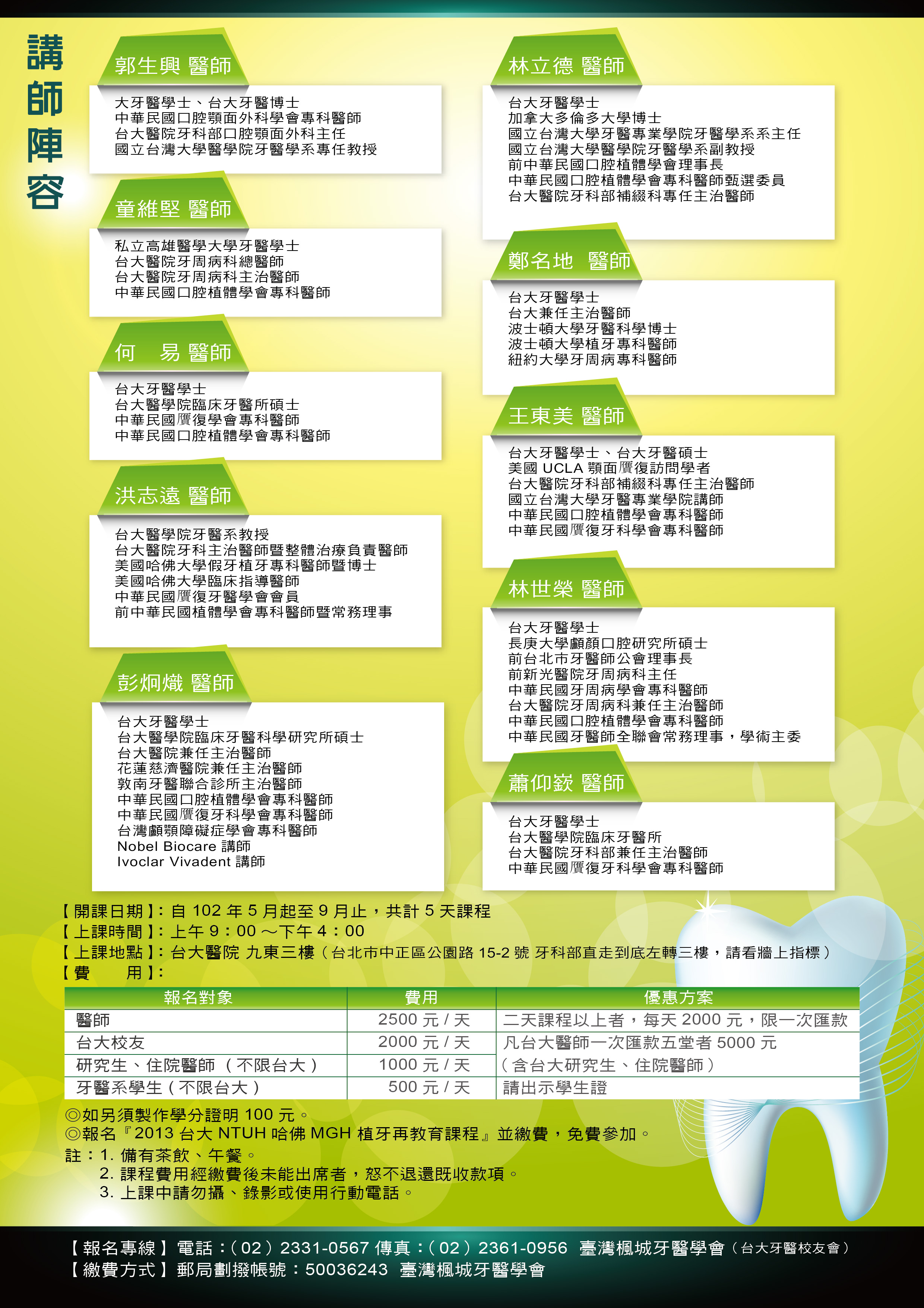 報名專線:02-23310567 台大牙醫校友會 劉小姐
